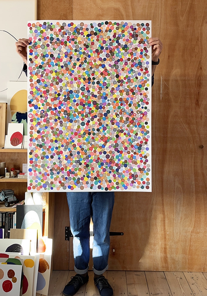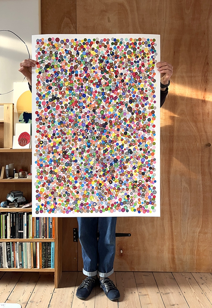 One of a kind signed originals, made using graphic marker pens, each held stationary for varying durations on a sheet of paper. For more information about these works please explore this book. To buy, please email.