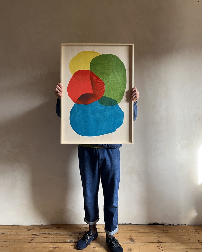 Rolling Pin Painting (ref 16) acrylic on Birch plywood panel with edge frame and mounting brackets on reverse 500mm x 700mm Unique/signed